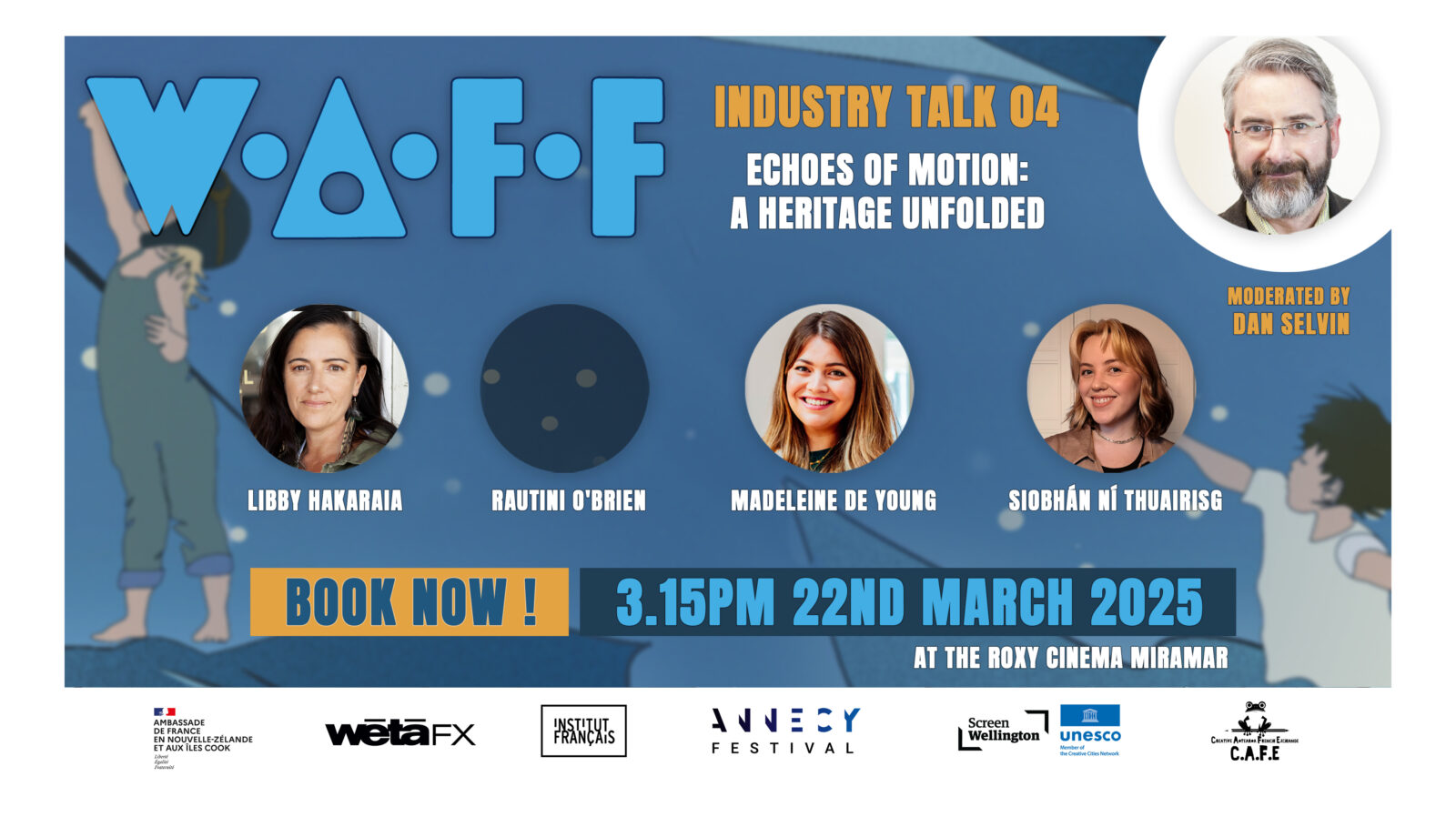 Joining the conversation, representatives from the Māoriland Festival and M.A.T.C.H will share their work in supporting Māori filmmakers and fostering the transmission of Māori culture through animation.